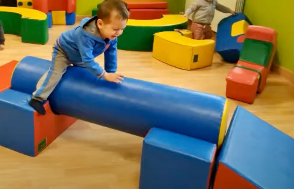 Martín todos los martes tiene una sesión de psicomotricidad, en la escuela infantil, en el aula del “León Melenas”, y disfruta mucho con ella. Experimentar con pañuelos, saltar en colchonetas, realizar circuitos, jugar con pelotas, bailar libremente,… va generando aprendizajes que serán la base de su futuro desarrollo.