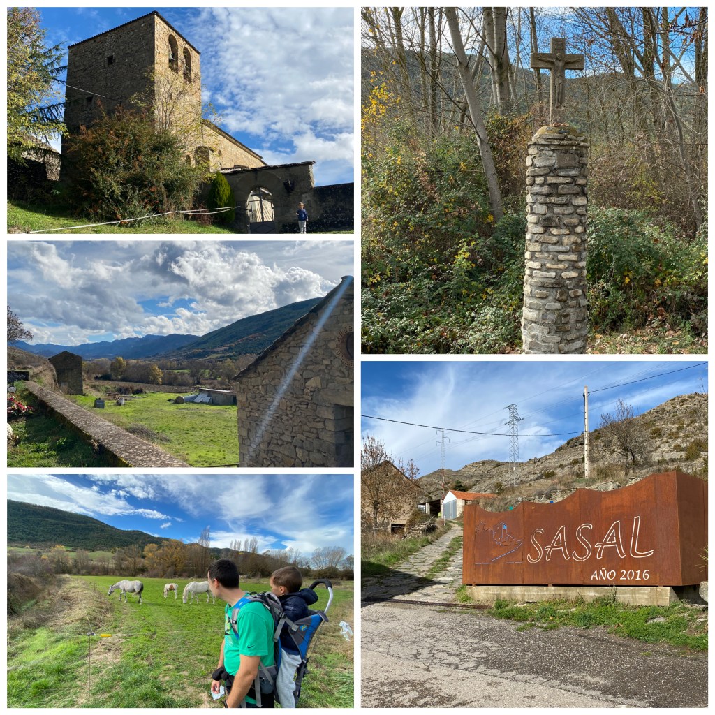 Nos encantó el gran panel, con el nombre de Sasal, como tienen en muchas ciudades de fondo para hacer fotos. También hay dos paneles explicativos del pueblo y del camino de Santiago.