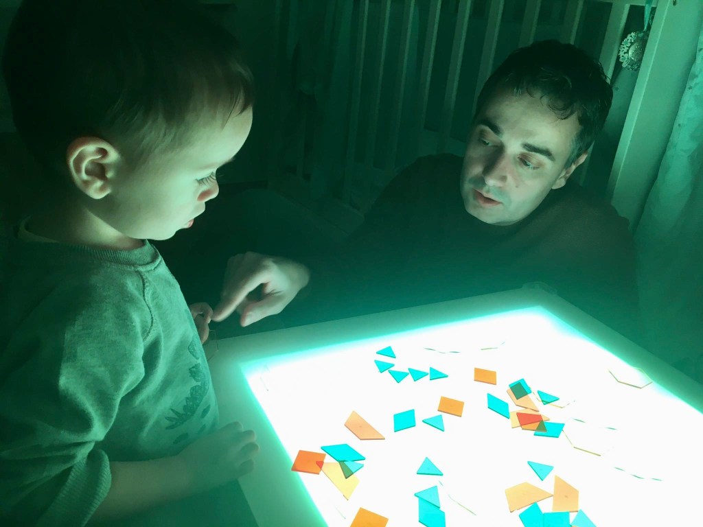 Nosotros hicimos una mesa de luz casera antes de que naciera Martín y, desde hace tiempo la utilizamos mucho, cada vez más.