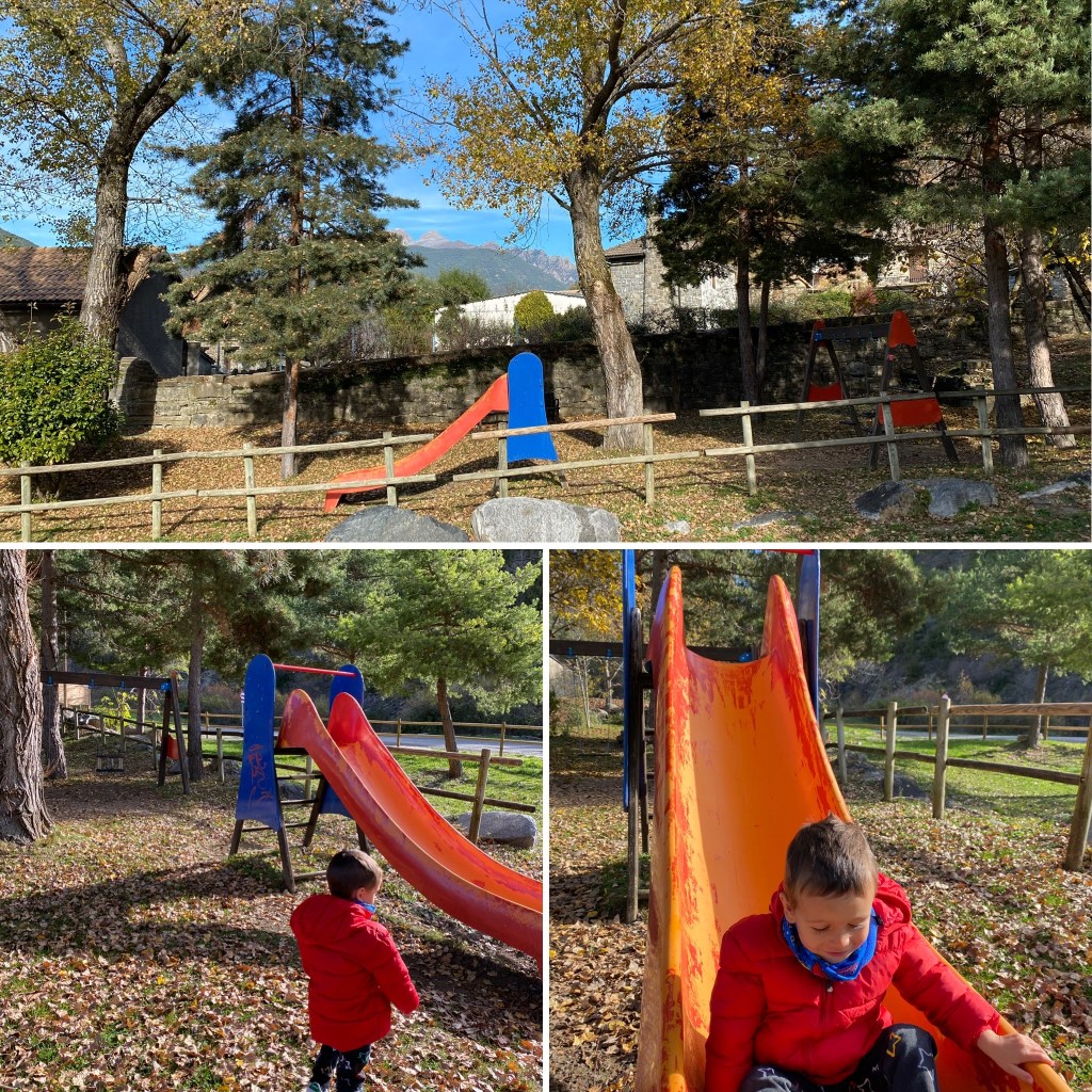 Al aparcar el coche en el parking, nos llamó la atención el parque infantil de la entrada del pueblo de Orós. Nada más verlo ya decidimos que, a la vuelta de la excursión, podríamos jugar un rato en él.
