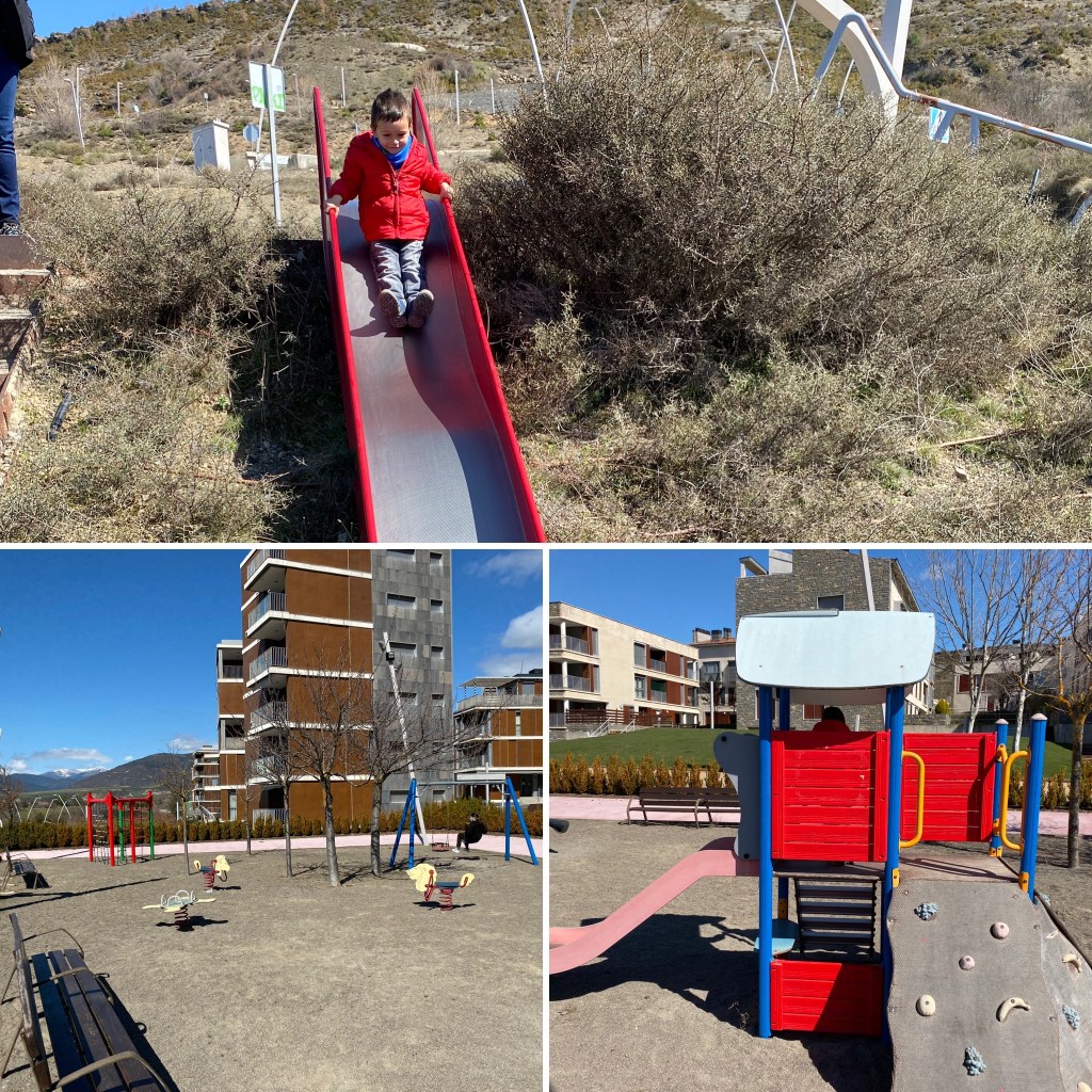Hace unos días, tras la excursión que hicimos por la localidad de Satué, nos acercamos a la urbanización de Las Margas a jugar en sus parques infantiles. Y hablamos en plural porque hay más de uno.