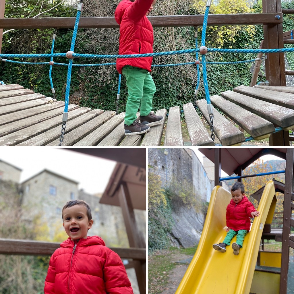 A Martín lo que más le gusta es una estructura grande, que tiene un puente de madera que se mueve y que acaba en un largo tobogán.