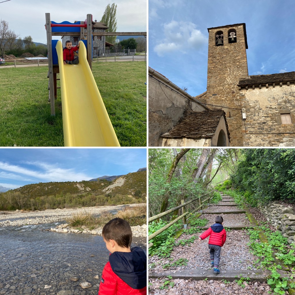 Aparcamos a la entrada de Aurín y la primera sorpresa fue encontrar un parque infantil en el que Martín pasó un rato agradable bajando por el tobogán. Tras jugar un rato, nos adentramos en el pueblo, y nos llamó la atención la iglesia parroquial dedicada a San Esteban, datada en los siglos XVII y XVIII.