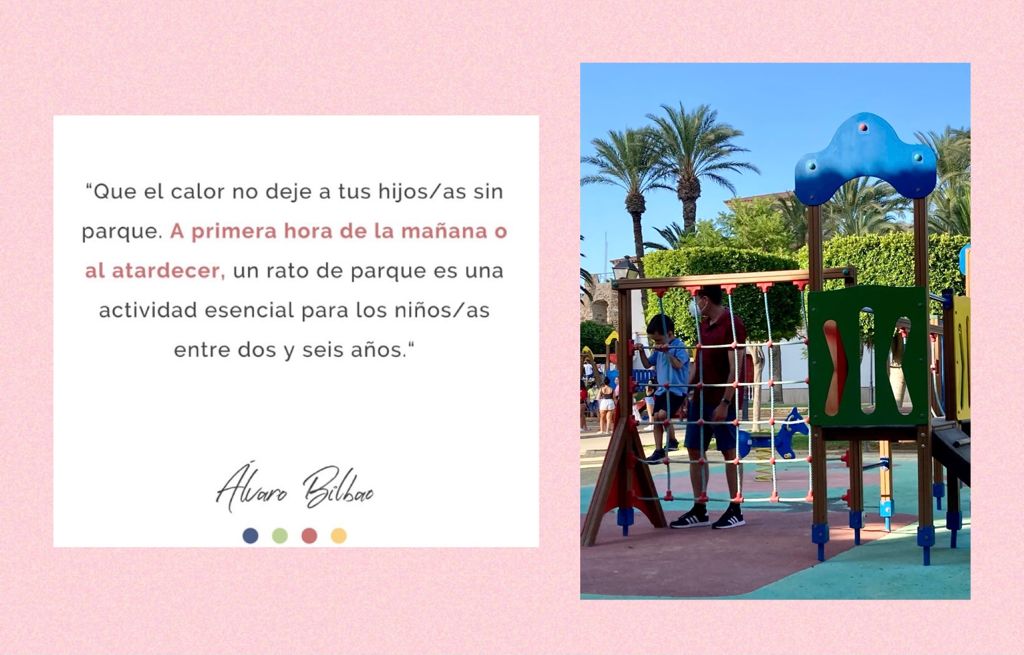 Nos ha gustado mucho esta reflexión de Álvaro Bilbao sobre lo importante que es en los niños el rato de parque, sobre todo entre los dos y seis años, y también en verano, claro está, evitando las horas de más calor.