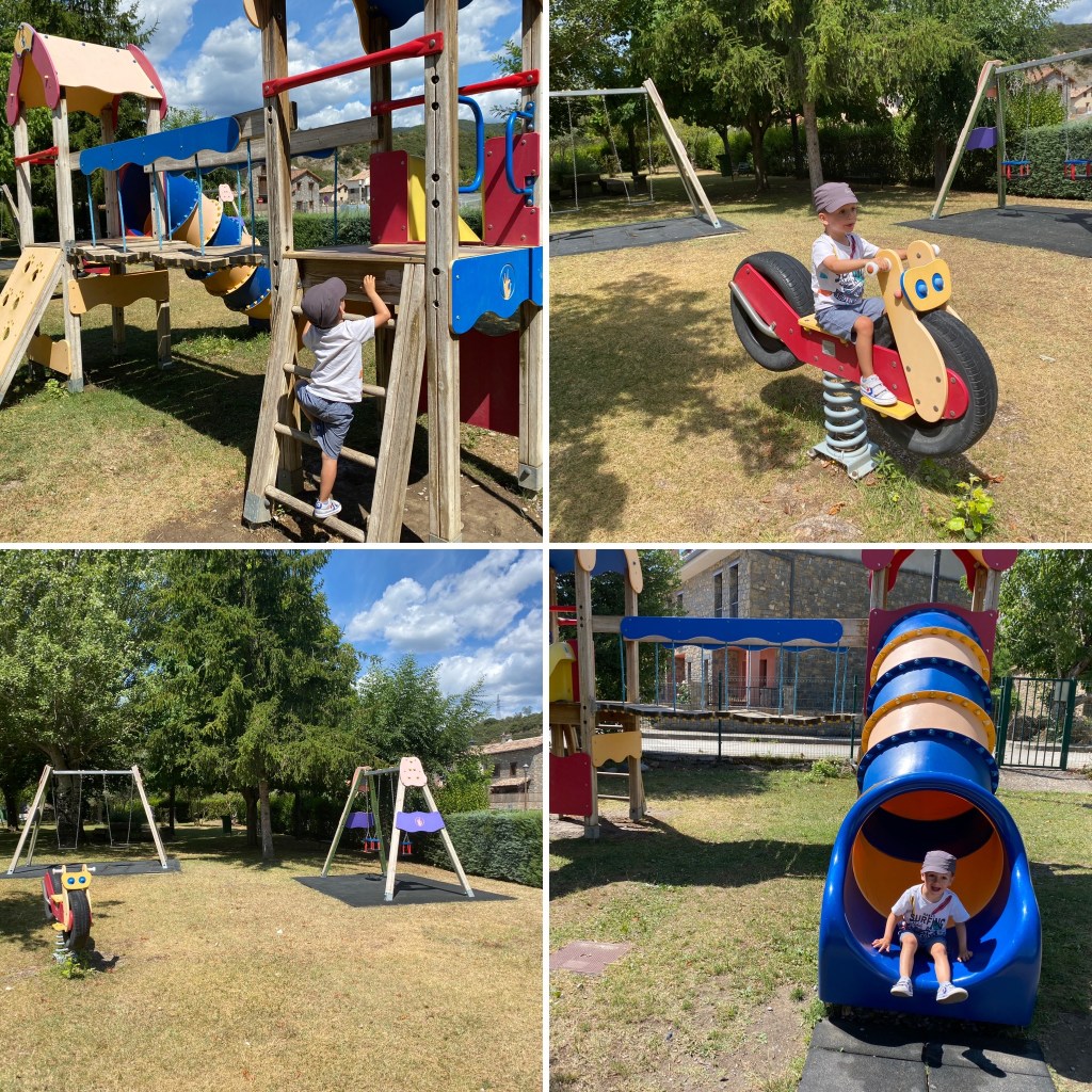 Hace unos días, cuando fuimos de excursión por la vecina Comarca del Sobrabe, comimos en un restaurante de Labuerda. Antes de comer, dimos un paseo por el pueblo, y al acercarnos al río, encontramos un bonito parque infantil.