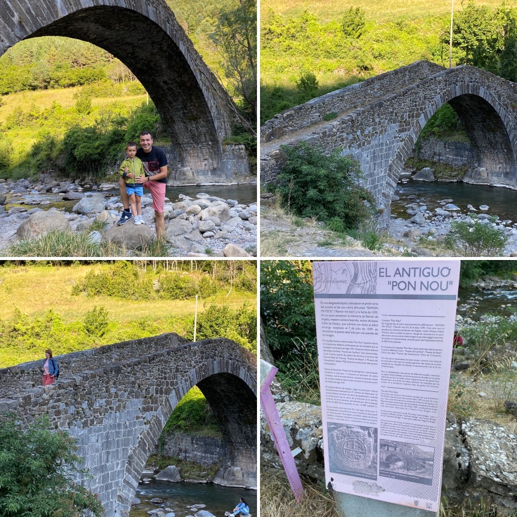 El día que visitamos la Torreta de Fusilería de Canfranc, aprovechamos a cruzar uno de los puentes más bonitos del Alto Aragón, el Puente de los Peregrinos, también conocido como Puente de Abajo, Puente del Cementerio o históricamente como Pon Nou, un puente situado al sur del núcleo de Canfranc-Pueblo.