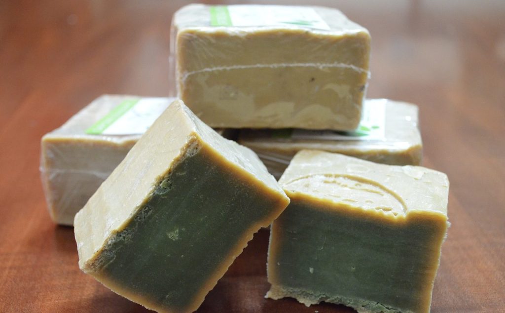 El jabón de Alepo se elabora de manera tradicional desde hace siglos en la región de Alepo al norte de Siria. Se realiza exclusivamente con aceite de oliva, aceite de laurel, hidróxido de sodio y agua, por lo tanto es completamente vegetal y biodegradable. Se puede usar diariamente para la higiene de manos, cara, cuerpo y cabello. También tiene muy buenos resultados en problemas de la piel y el cabello: acné juvenil, piel seca, psoriasis…