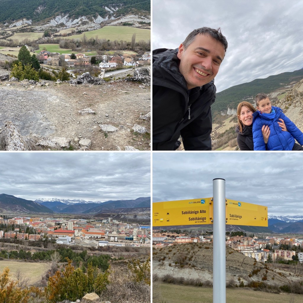 Una buena actividad para hacer con niños desde ahí, es jugar a encontrar edificios de Sabinánigo como el colegio, nuestra casa, la gasolinera o las fábricas.