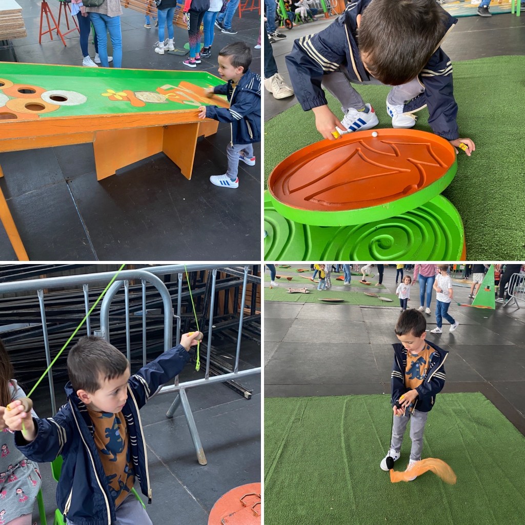 1.- Juegos de psicomotricidad y reflejos: diferentes “aparatos” de juegos con bolas para trabajar la psicomotricidad y a la vez aprender a hacer malabares.