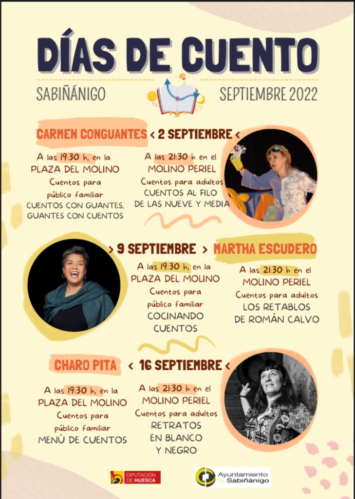 En el mes de septiembre llega a Sabiñánigo un ciclo cultural titulado “Días de Cuento”, en el que el Área de Cultura del Ayuntamiento, de Sabiñánigo, acerca varias sesiones de cuentos, tanto para público infantil como para público adulto.