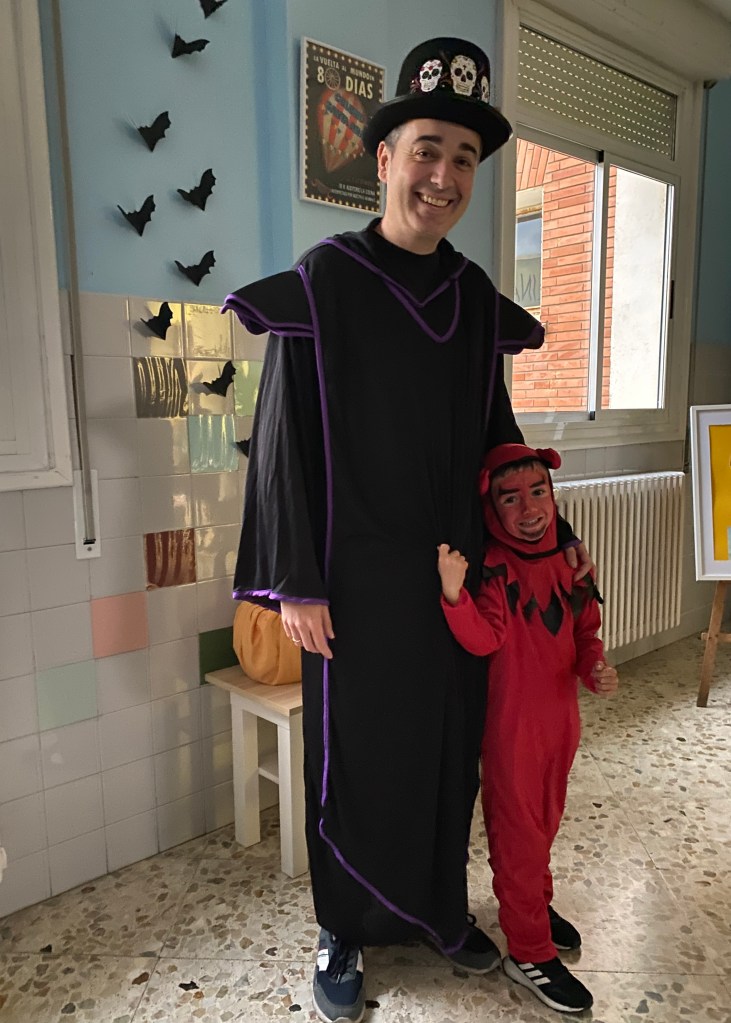 Para rematar la semana, ayer viernes, se celebró una fiesta de Halloween, a la que se podía acudir disfrazados. Martín fue con un disfraz de diablillo, con el que estaba muy gracioso. Los alumnos mayores del colegio, les hicieron un teatro de una bruja “buena” y divertidos juegos.