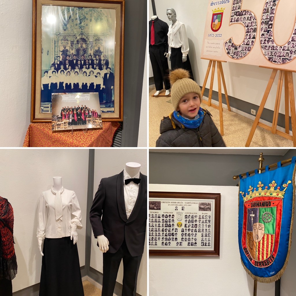 También hay grandes fotografías de grupo, así como una pequeña muestra de los trajes que han ido llevando en las diferentes actuaciones; también se muestran trofeos, reconocimientos y recuerdos que han ido sumando durante este medio siglo de andadura.