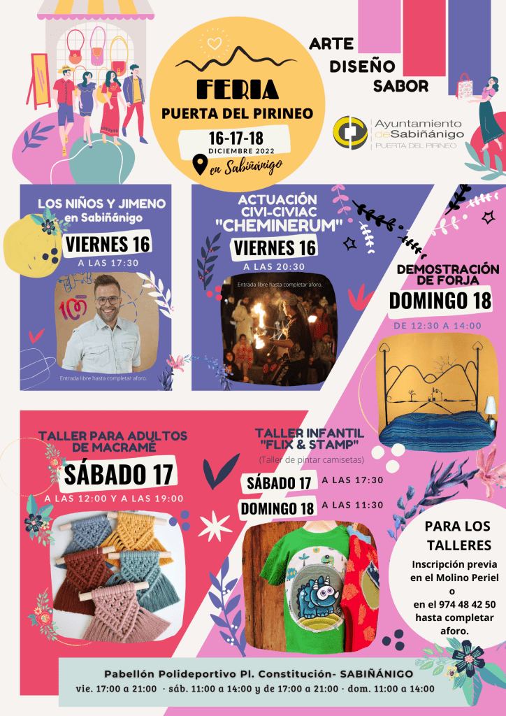 También, habrá talleres de macramé (para adultos) el sábado por la mañana y la tarde; otro de estampación de camisetas Flix&Stamp (para niños), el sábado, a las 17:30 horas y el domingo a las 11:30 horas y una demostración de forja, el domingo de 12:30 a 14:00 horas, a cargo de Forja Rulo, un artesano del hierro de Ibort.