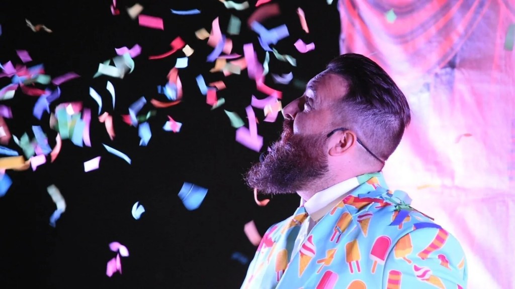 El confeti que lanzaba dio mucha alegría al espectáculo, así como el uso de la música. Además, con dos pantallas, creaba divertidos efectos mágicos.
