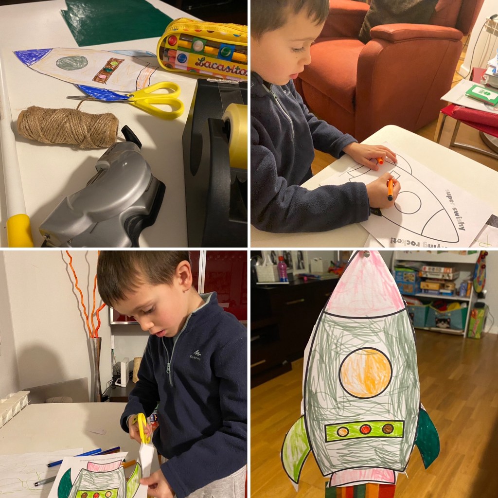Se trata de una manualidad de un cohete espacial, muy sencilla y que requiere materiales muy fáciles de conseguir.