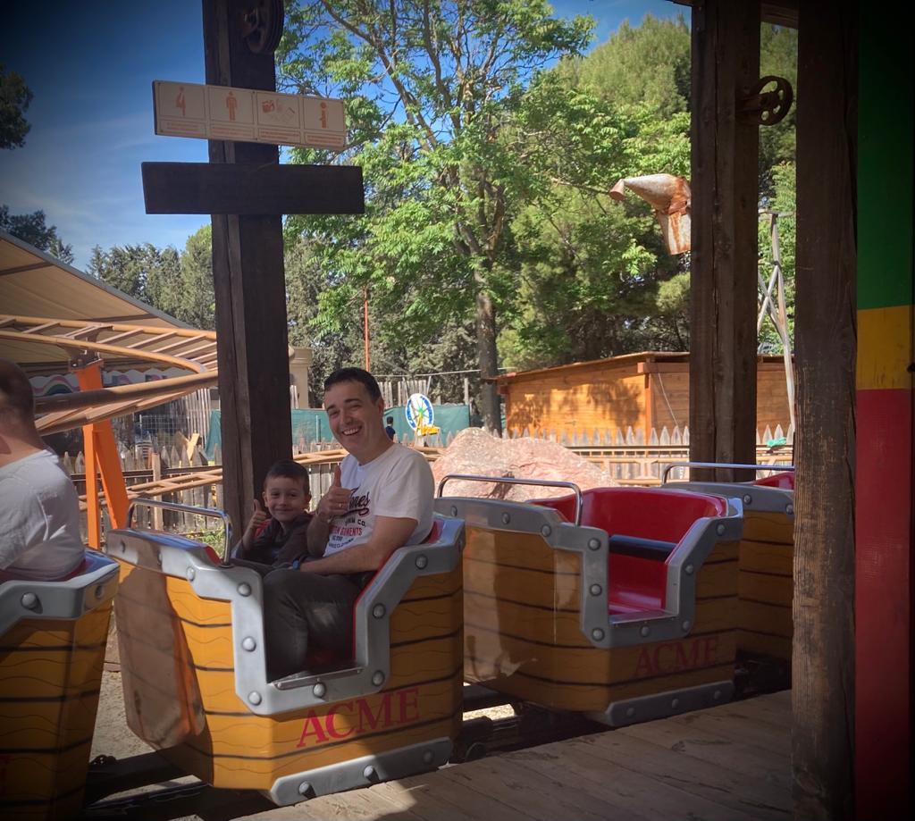 Como mide más de 1,10 metros, ya puede montarse en atracciones de adultos, acompañado.