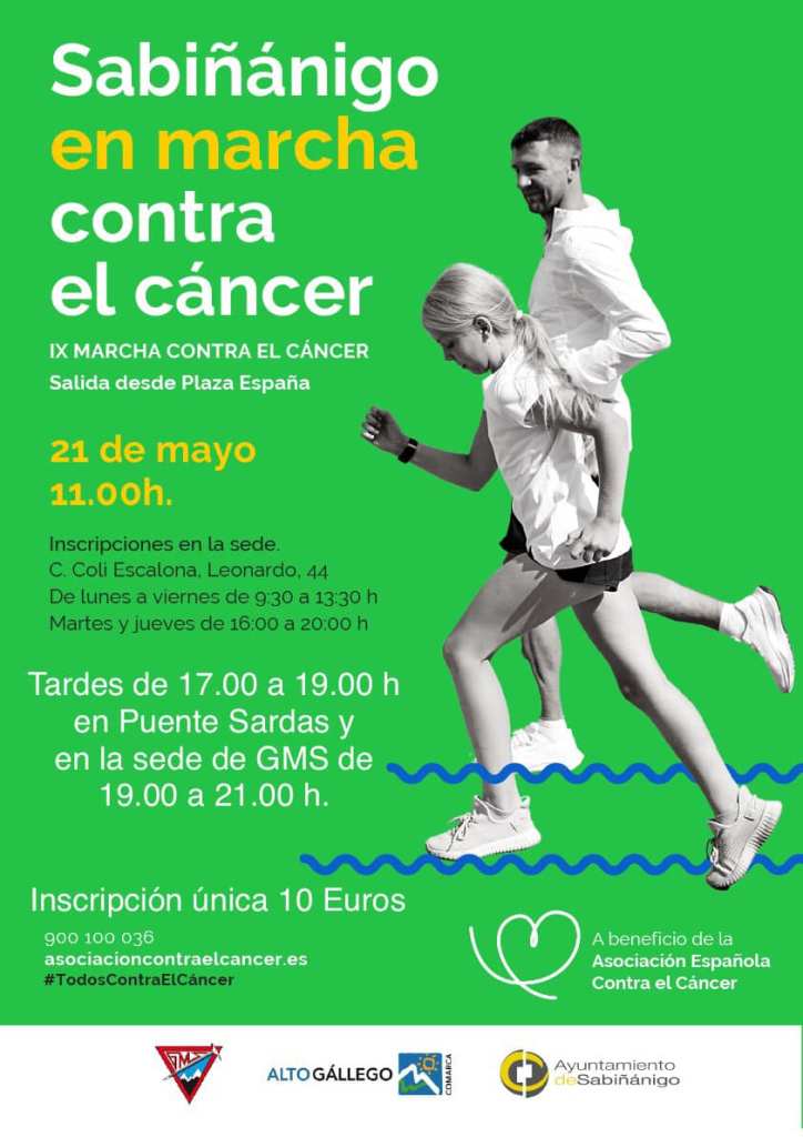 El próximo domingo, día 21 de mayo, se celebra la IX Marcha contra el Cáncer, de Sabiñánigo. Como viene siendo habitual, la marcha saldrá a las 11:00 horas desde la Plaza España.