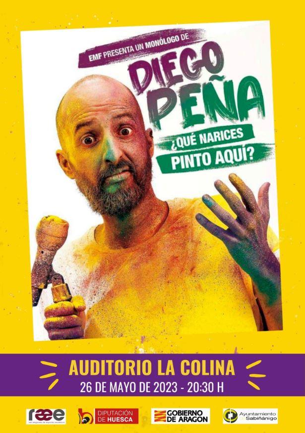 Mañana, viernes, actúa nuestro buen amigo Diego Peña en el Auditorio La Colina, de Sabiñánigo, con su espectáculo, “¿Qué narices pinto aquí?”.