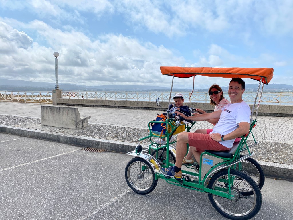 Alquilamos una bici-paseo para los tres y nos pareció un medio de transporte súper divertido.