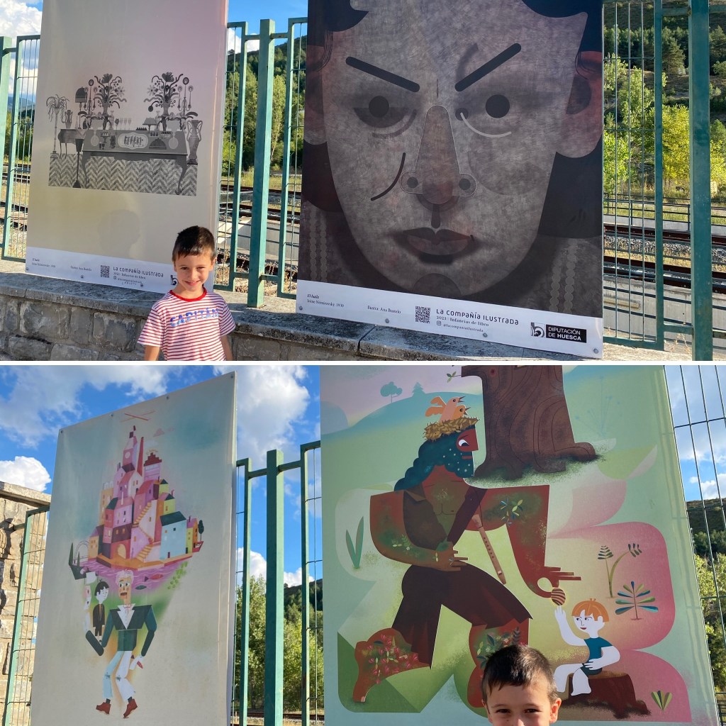 La exposición, compuesta por ilustraciones de textos literarios, se encuentra instalada en la calle Serrablo entre los números 2 y 38, concretamente sobre la valla de la estación y vías de Renfe de nuestra localidad.