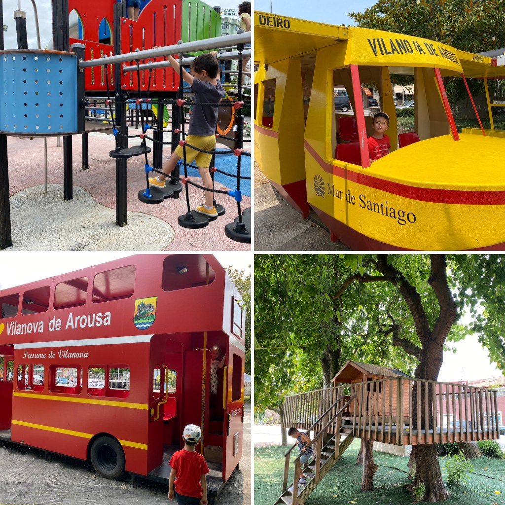 Otro de los que nos llamó la atención es el parque infantil, Jardín Umbrio de Vilanova de Arousa. Después del éxito de las navidades de 2016, el ayuntamiento decidió dejar permanentemente este parque infantil, e ir ampliando sus instalaciones. Un autobús de dos pisos al más puro estilo inglés, un hidroavión donde trepar, pilotar, o imaginar; un castillo del que cuelgan columpios y salen toboganes por los que tirarse, o una casa en el árbol en la que recrear historias de terror.