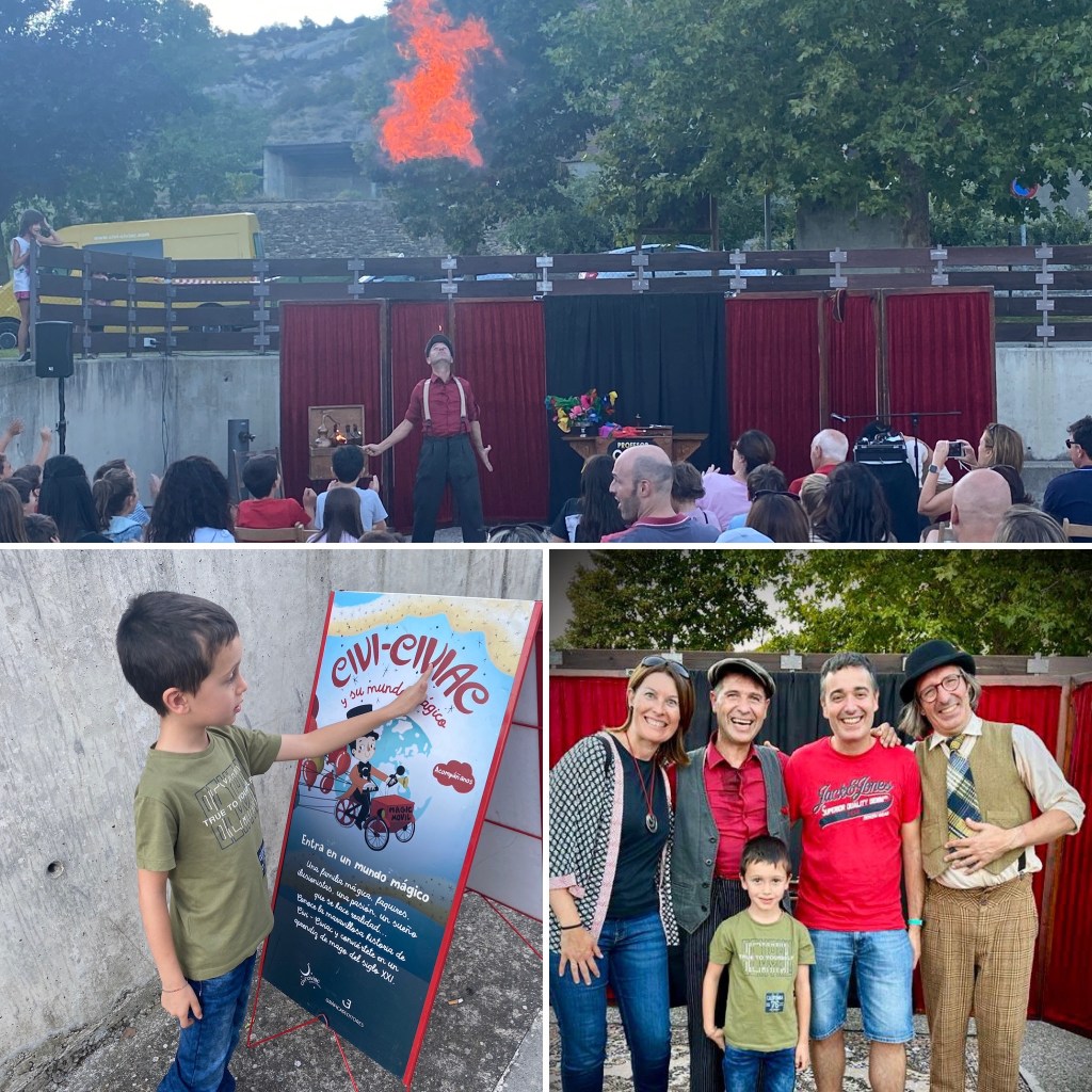 Ayer estuvimos en Sorripas, en la zona infantil, viendo la actuación de la compañía Civi Civiac, Profesor Coperini.