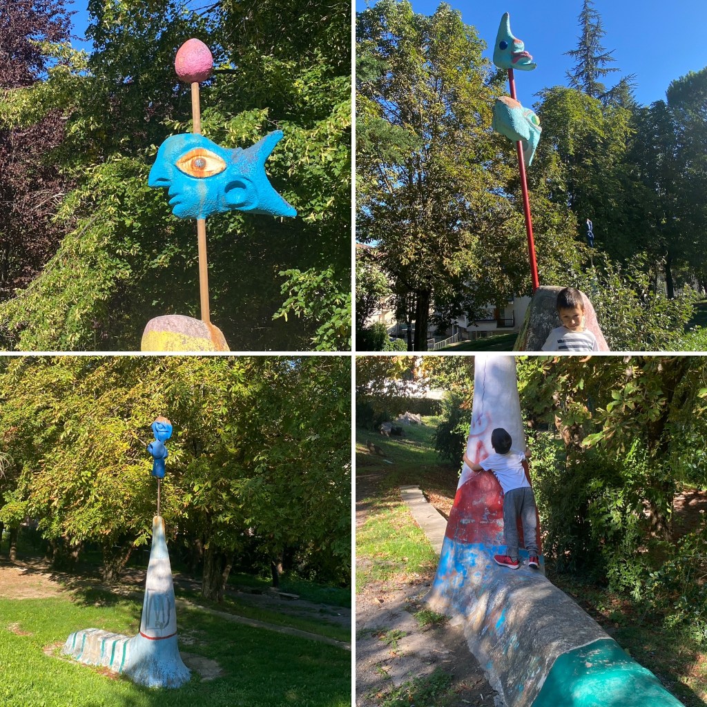 Justo debajo de la calle Tierra de Biescas, junto al pipí can que hay donde el parking de autocaravanas de Jaca, hay un pequeño parque con unas bonitas esculturas.