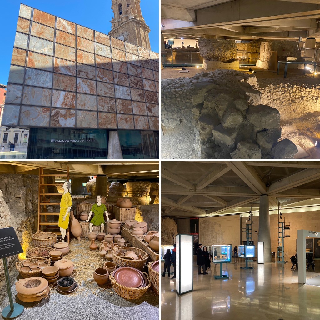 El museo del Foro Romano se ubica bajo el cubo de alabastro, en el subsuelo de la actual plaza de La Seo y alberga en su interior restos arqueológicos de tiempos de Augusto y de Tiberio.