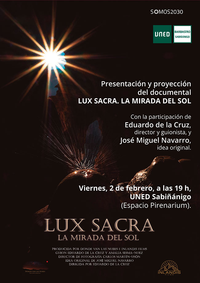 Mañana viernes, día 2 de febrero, a las 19:00 horas, se proyecta la película documental, “Lux Sacra. La mirada del Sol”, en la sede de la UNED de Sabiñánigo.
